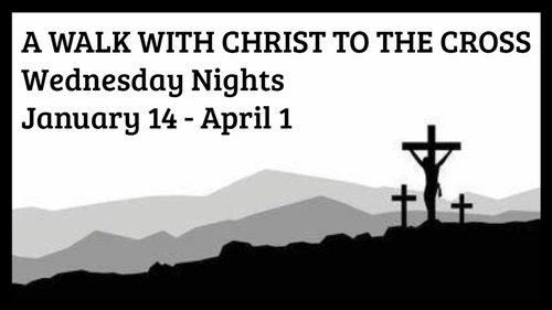 Beginning on Wednesday night in January Join us as pastor Chris Cooper teaches on the topic of Jesus and His walk to the cross. The study will start on January 14th 2025 at 6:30pm and will run weekly on Wednesday nights until April 1st 2025